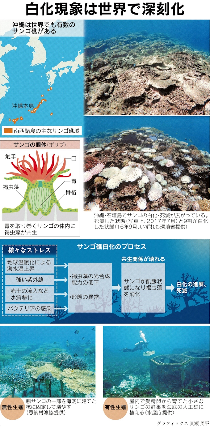サンゴの白化 解明進む 海水温上昇の影響 石西礁湖で7割死滅 沖縄 朝日新聞デジタル