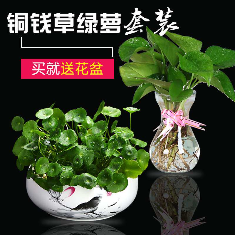 铜钱草植物盆栽绿萝水培玻璃瓶套装土培陶瓷盆吊兰防辐射室内花卉 盛江名瓷在线